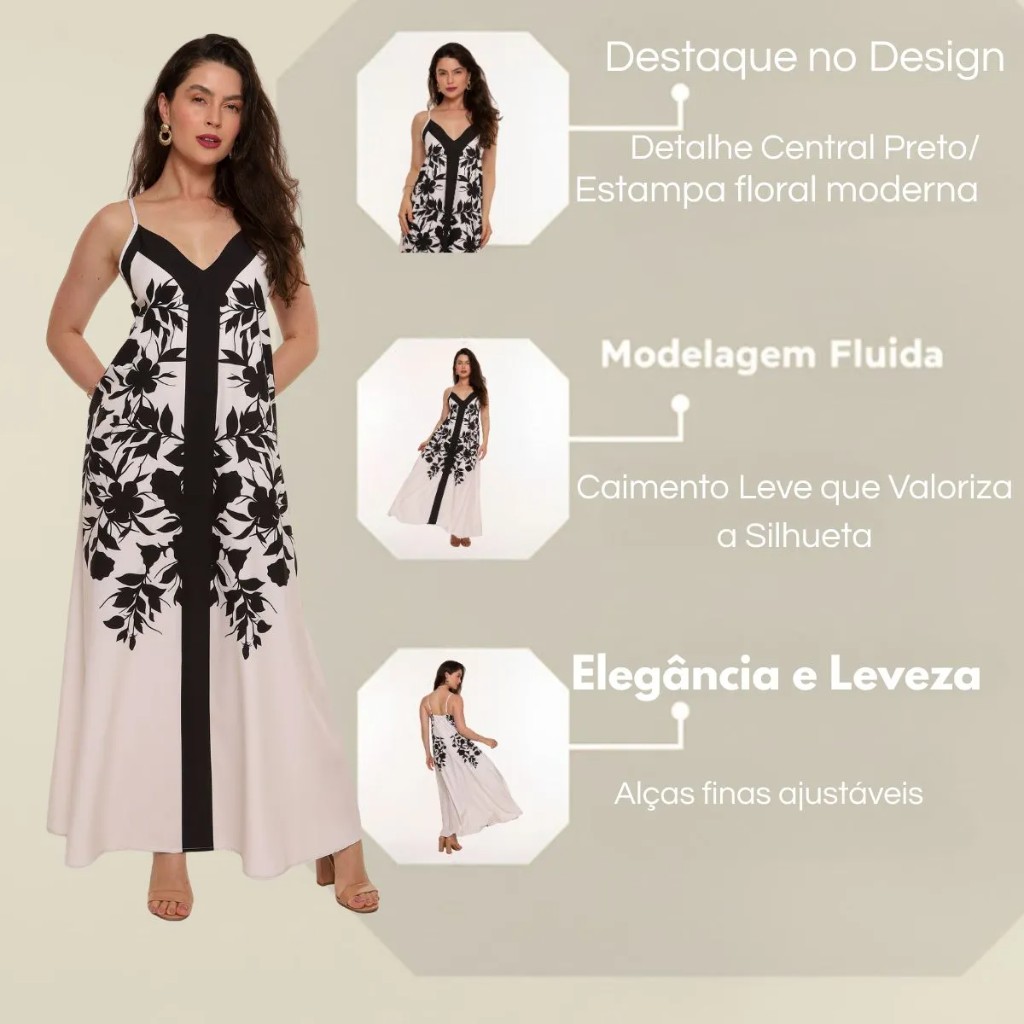 O Vestido Longo Estampado Preto Feminino Verão Chic WE Ves-006 é a escolha perfeita para mulheres que buscam elegância e conforto em qualquer ocasião. Com um design floral sofisticado, este vestido é ideal para eventos casuais, festas e passeios de verão, garantindo que você se destaque com estilo. Confeccionado em poliéster de alta qualidade, o vestido apresenta alças finas e um decote V que valorizam a silhueta feminina. DETALHES: Tecido: 95% Poliéster/ 5% Elastano Decote V Costas nuas Estampa floral bicolor que é puro charme Alças finas com ajuste confortável